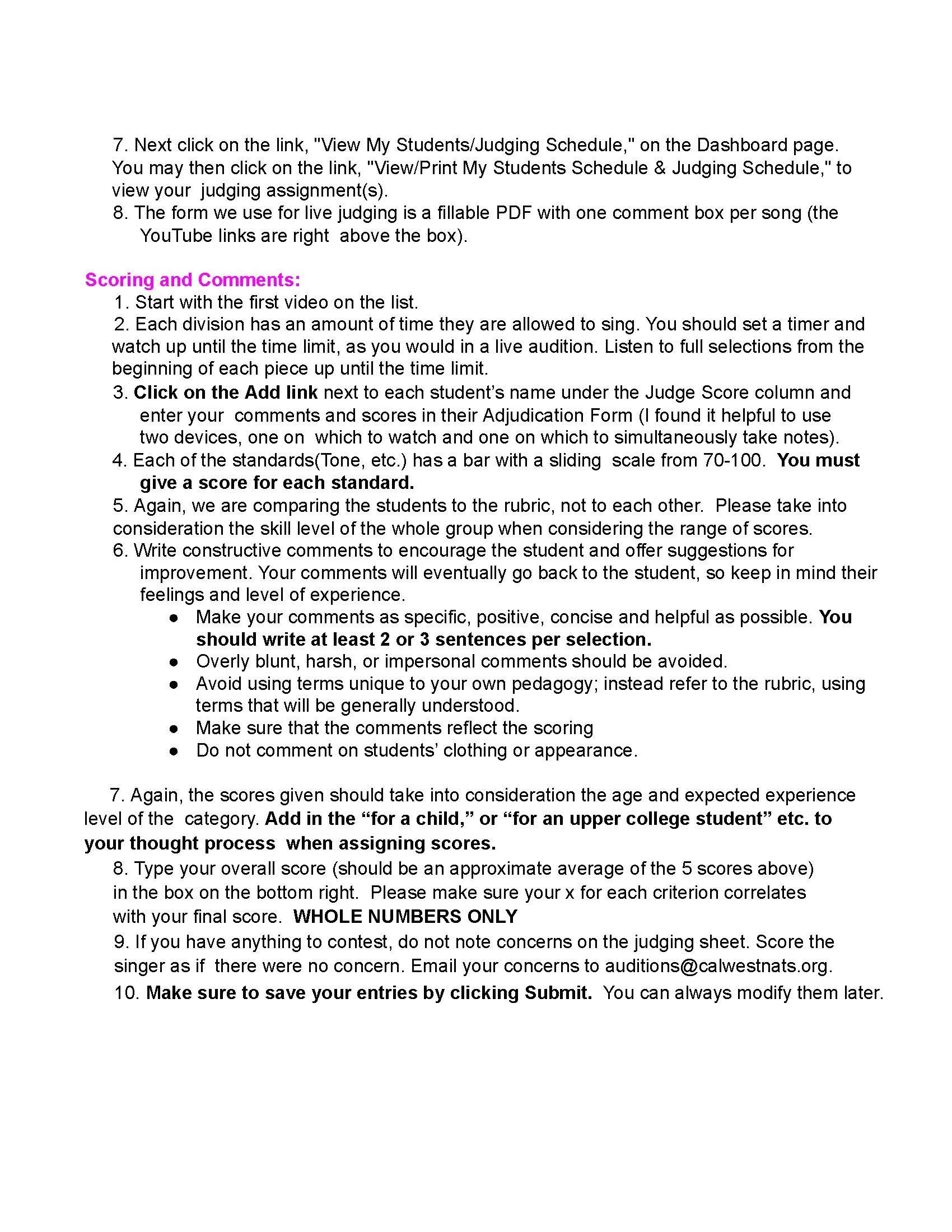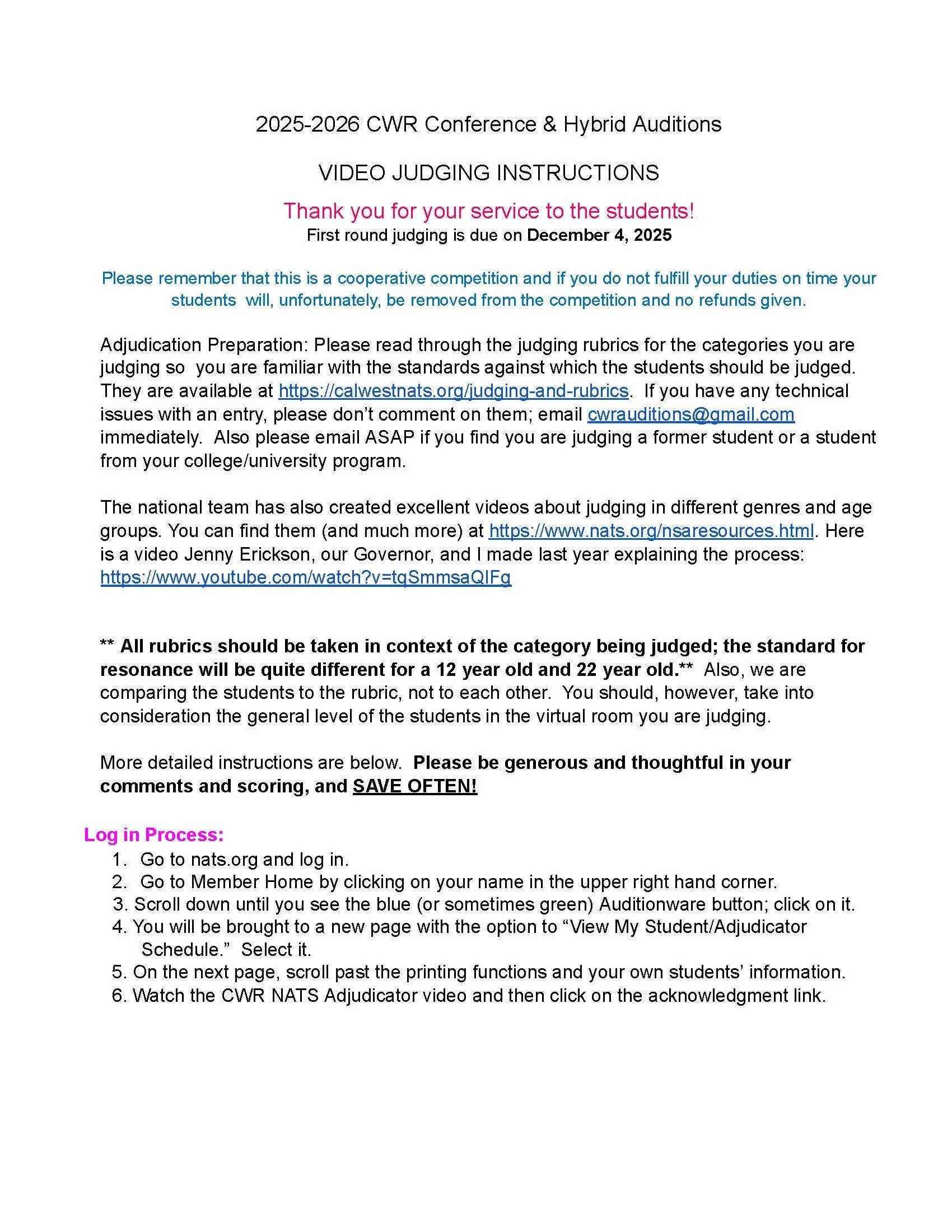 Thank you for your service to our students! All teachers entering students are required to judge any round in which their students participate. Full judging instructions are below. Also below are the rubrics, which should be the basis of your evaluation. Also below are a few of the many videos on best practices for judging specific categories. Please visit https://www.nats.org/nsaresources.html# for comprehensive judging information and many more excellent videos.